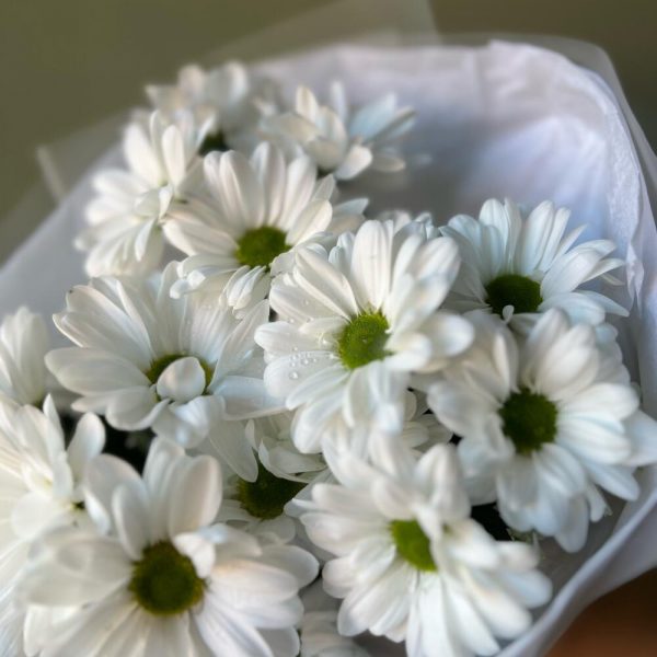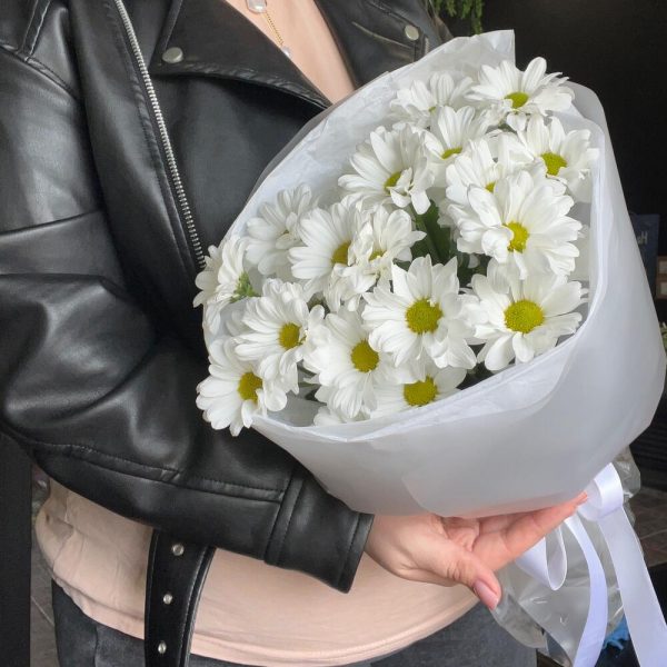Букет из 3 кустовых хризантем в стильной упаковке в Навашино